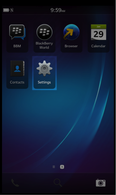 1. Go to your Blackberry 10's home screen, click on Settings.