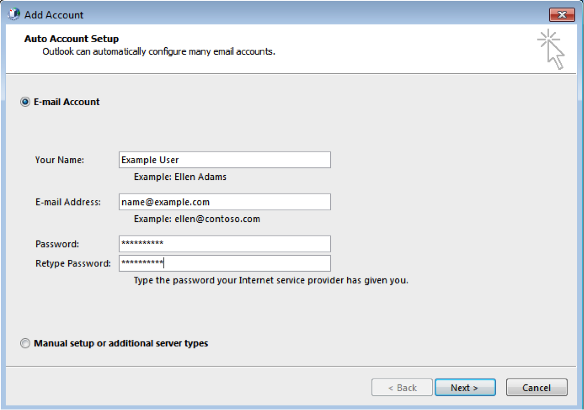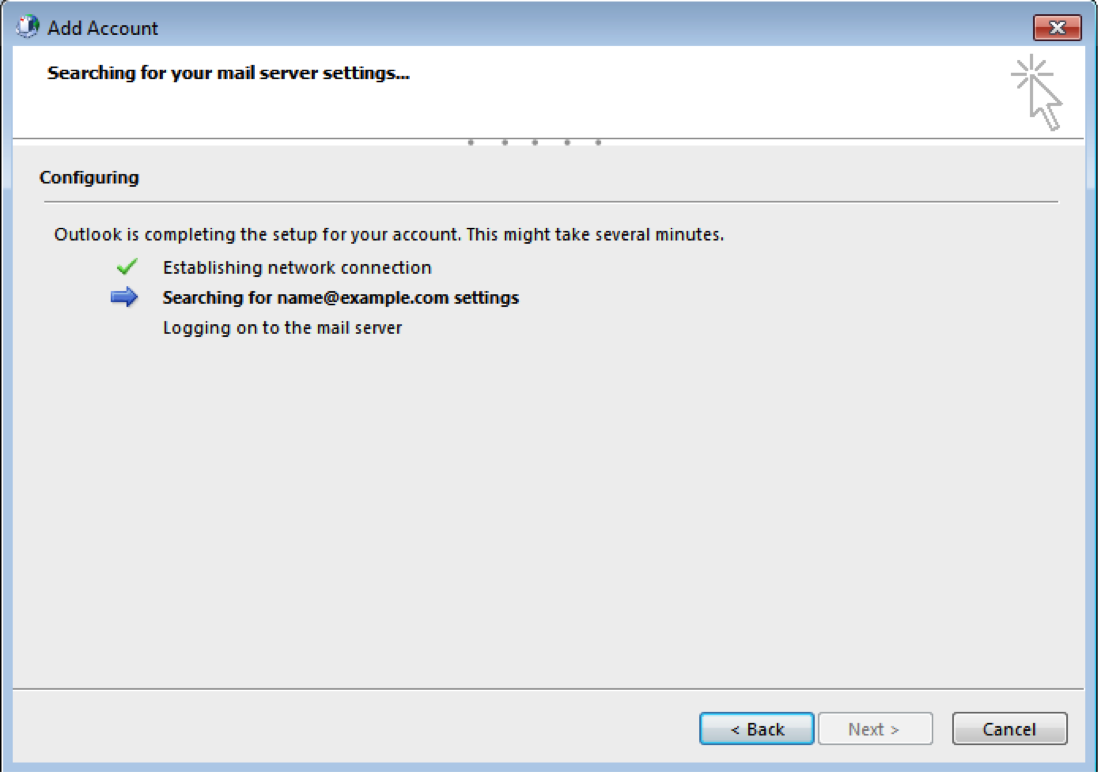 7. Outlook will attempt to setup your Exchange account. Once completed, click on Finish and then open your Outlook software.
